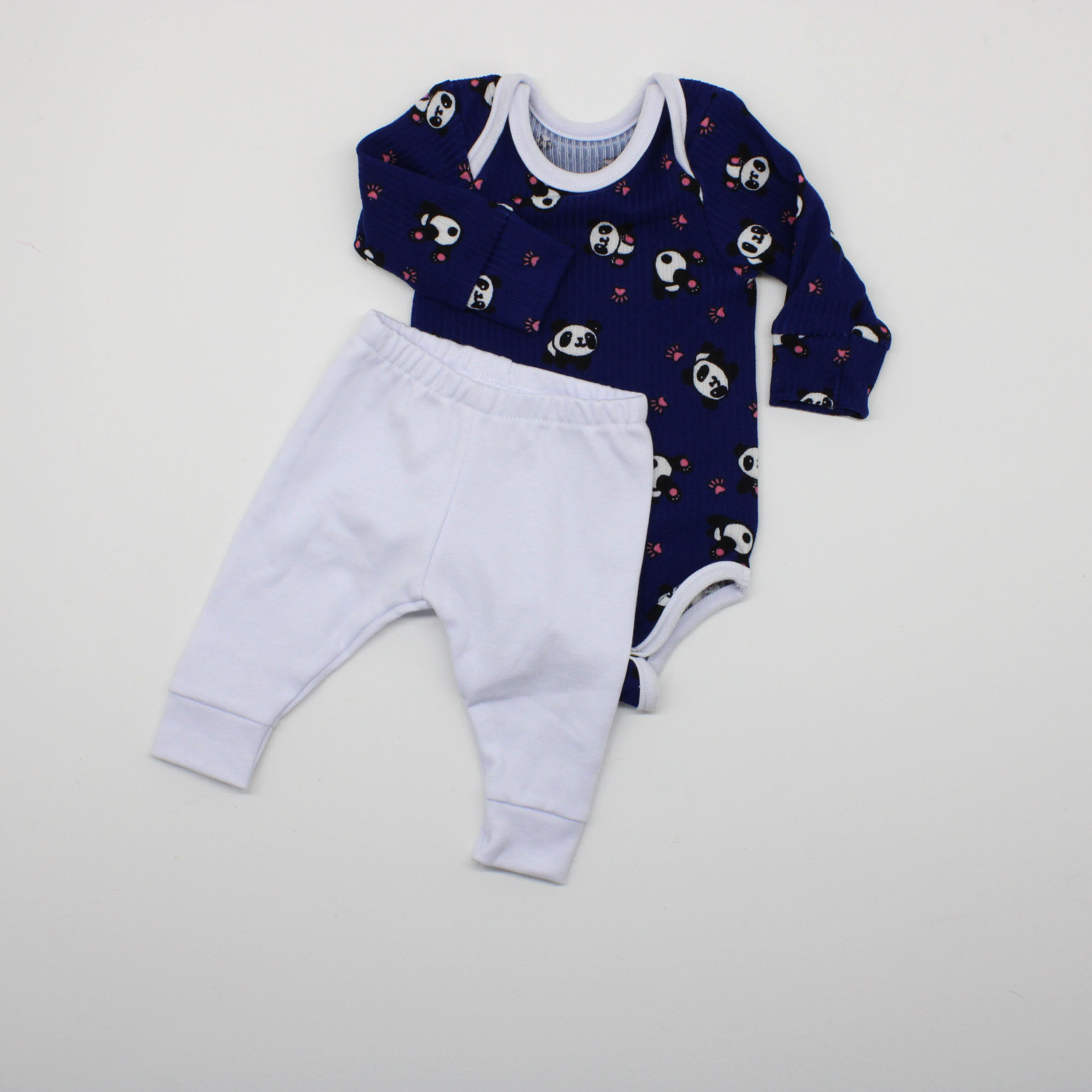 Conjunto Body Bebê Prematuro em Malha Canelada Azul marinho Pandinha Com Calça em Malha Ribana Branca Para Bebê de até 2,5 Quilos BOD139