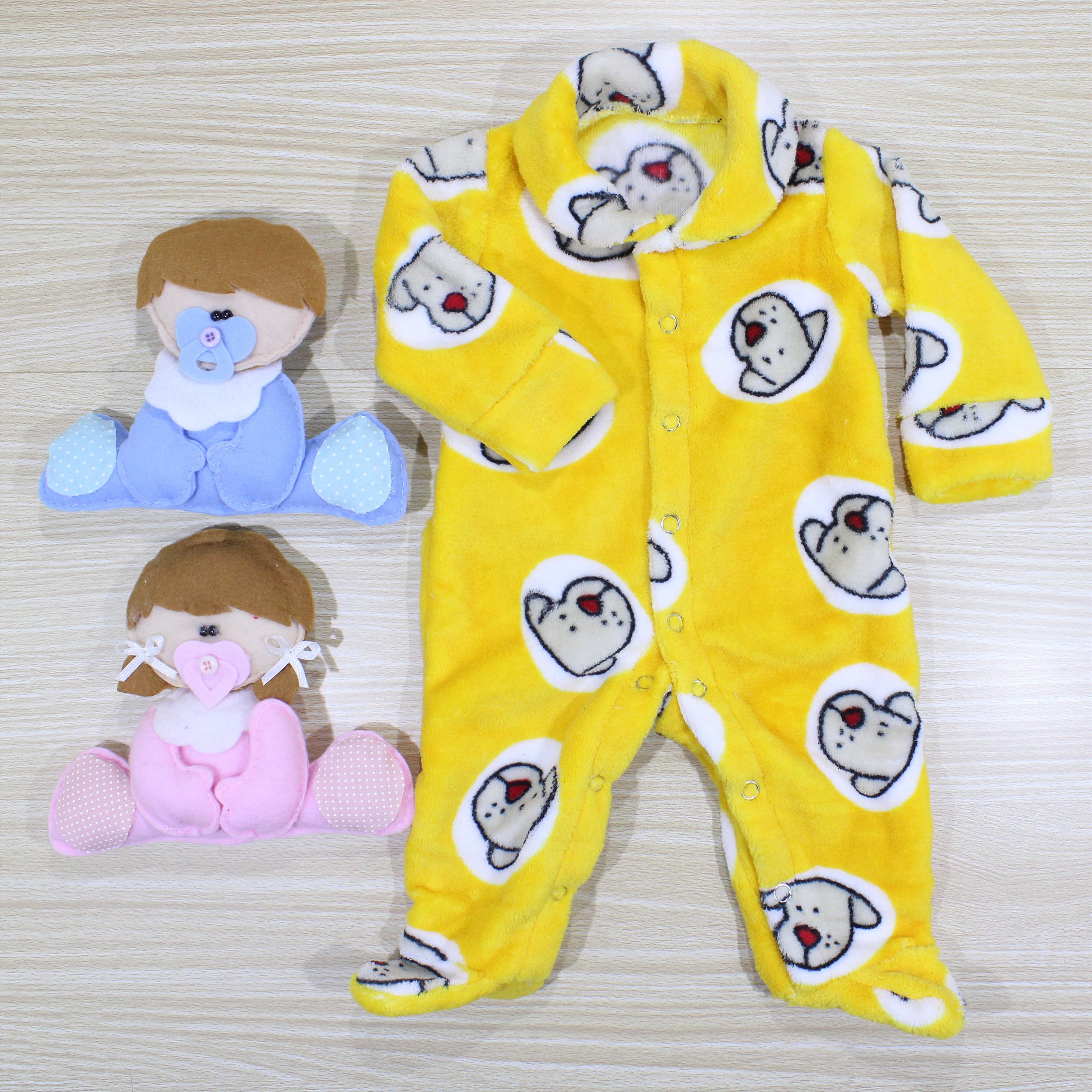 Tip Top Bebê Prematuro em Fleece Amarelo com Cachorrinhos Comprimento: 39cm do Ombro ao Calcanhar Largura: 40cm de Circunferência Mangas: 18cm de Comprimento Ref: TIPFL009 Para Bebê de até 2,5 Quilos