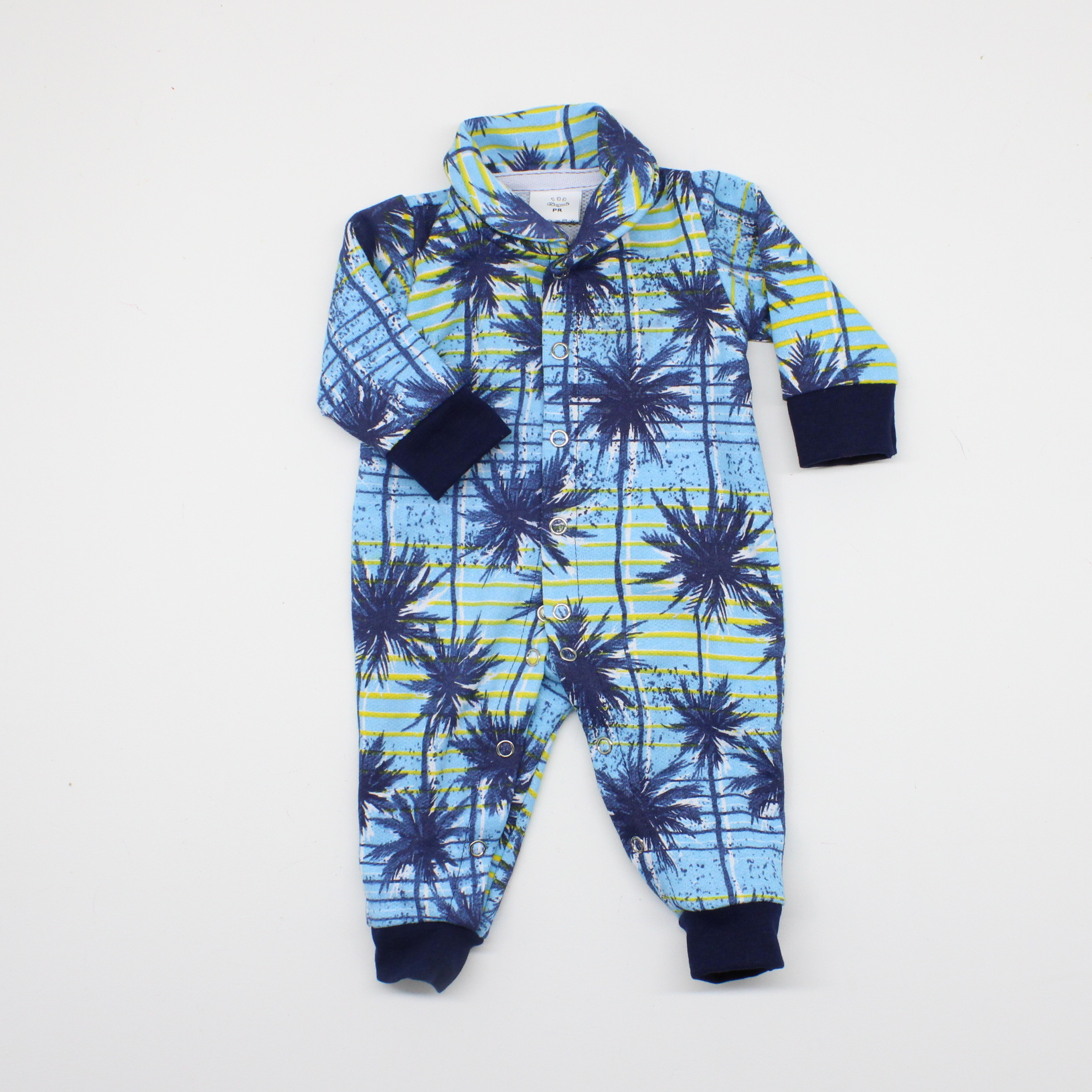 Macacão Tip Top Bebê Prematuro em Moletom Azul Marinho Coqueiros Comprimento: 39cm do Ombro ao Calcanhar Largura: 40cm de Circunferência Mangas: 18cm de Comprimento Para Bebê de até 2,5 Quilos