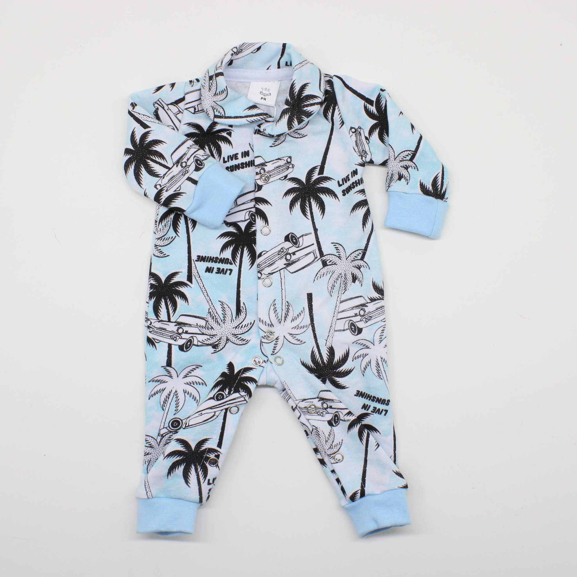 Macacão Tip Top Bebê Prematuro em Moletom Azul Claro Coqueiro Comprimento: 39cm do Ombro ao Calcanhar Largura: 40cm de Circunferência Mangas: 18cm de Comprimento Para Bebê de até 2,5 Quilos
