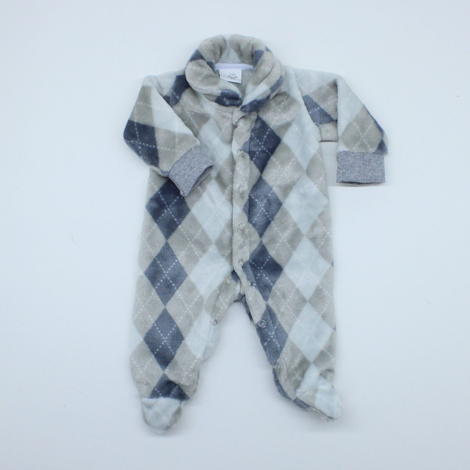 Macacão Tip Top Bebê Prematuro em Fleece Xadrez Cinza