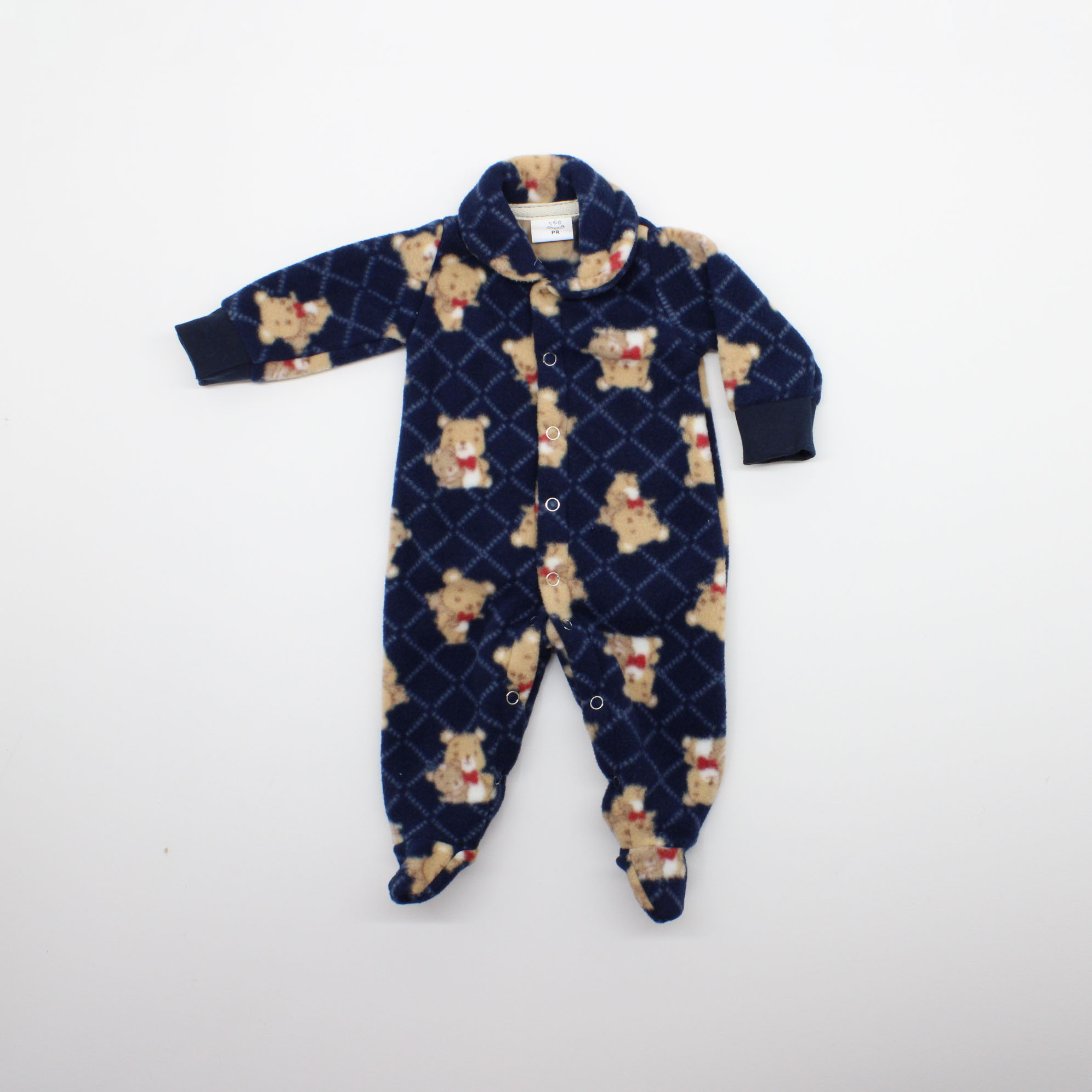 Macacão Tip Top Bebê Prematuro em Microsoft Ursinho Azul Marinho Xadrez Largura: 40cm de Diâmetro Mangas: 18cm de Comprimento Para Bebê de até 2,5 Quilos Ref: TIPMS096