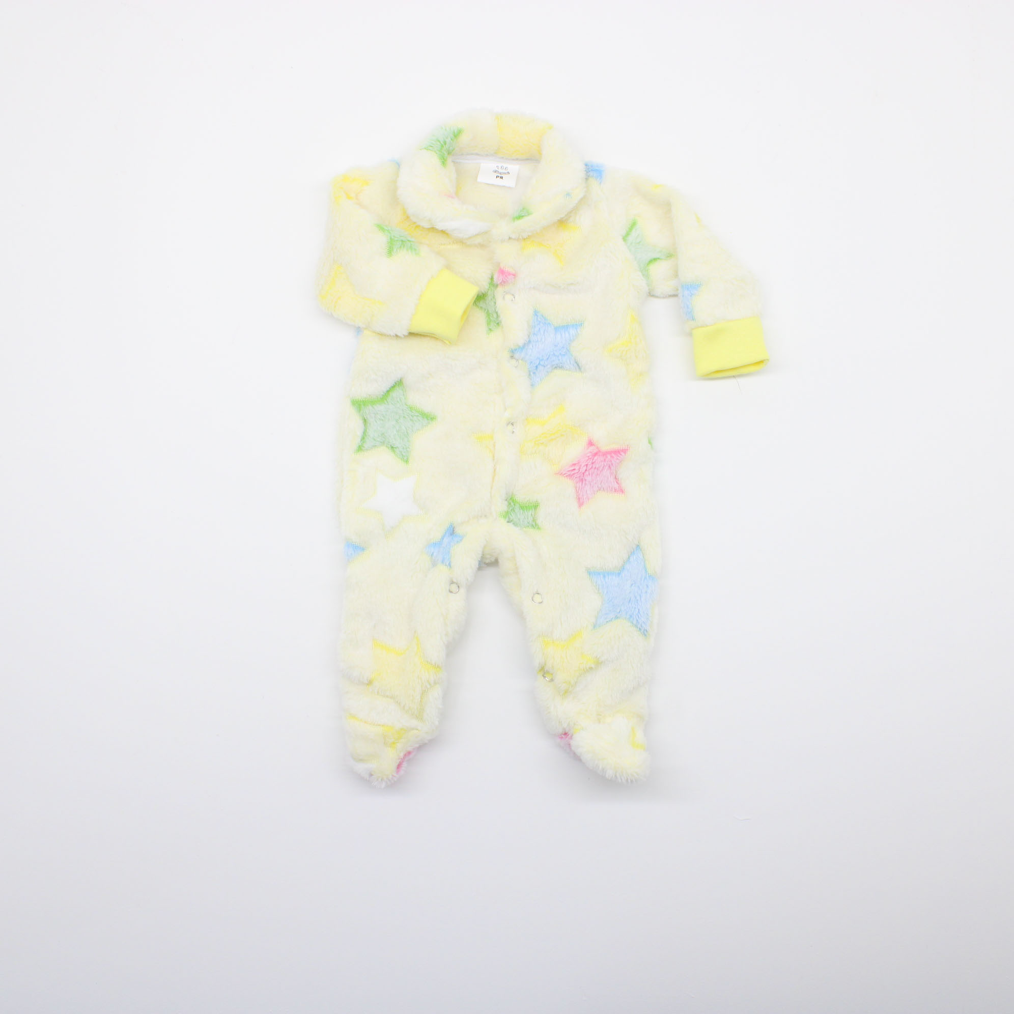 Macacão Tip Top Bebê Prematuro em Fleece Amarelo Estrelas Coloridas Comprimento: 39cm do Ombro ao Calcanhar Largura: 40cm de Circunferência Mangas: 18cm de Comprimento Para Bebê de até 2,5 Quilos