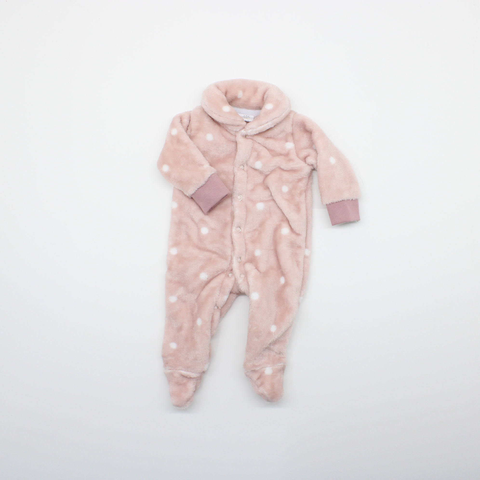 Macacão Tip Top Bebê Prematuro em Fleece Rosa Antigo Poá Branco Comprimento: 39cm do Ombro ao Calcanhar Largura: 40cm de Circunferência Mangas: 18cm de Comprimento Para Bebê de até 2,5 Quilos